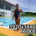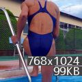 この写真の場所、かなり整備されたプールのようですね。 しっかり脱毛されたマイスリーさんのボディーにこのハイレグ競泳水着似合ってます。 この競泳水着をお召しのマイスリーさんのお姿、前から撮影したショットも似合いそうです。