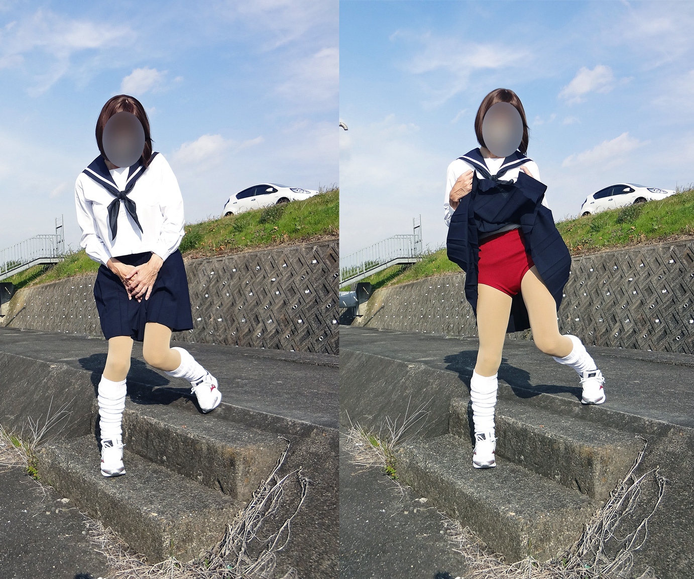 セーラー服にギャレックスブルマ(エンジ)の組み合わせ。