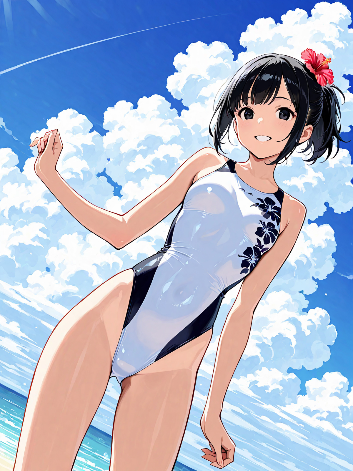 1. あなたが作成した、女性が競泳水着を着用したオリジナルイラストまたはAI生成画像