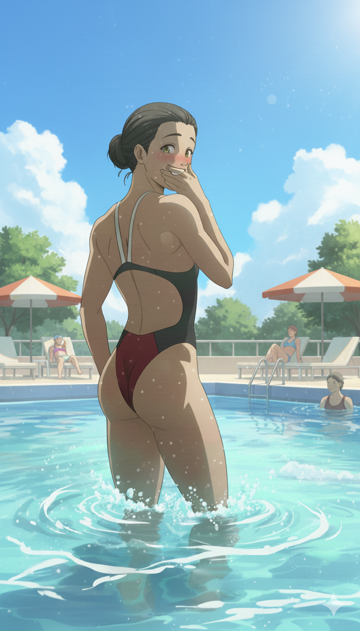 競泳水着以外のウェアを着用した女性のオリジナルイラスト、AI生成画像は、[女性] 二次元 全般画像掲示板へ投稿して下さい。