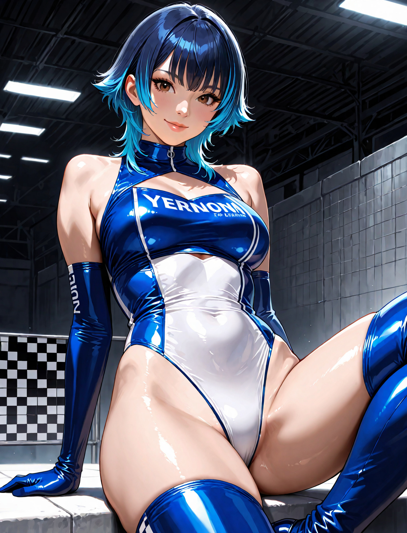 競泳水着を着用した女性のオリジナルイラスト、AI生成画像は、[女性] 二次元 競泳水着画像掲示板へ投稿して下さい。