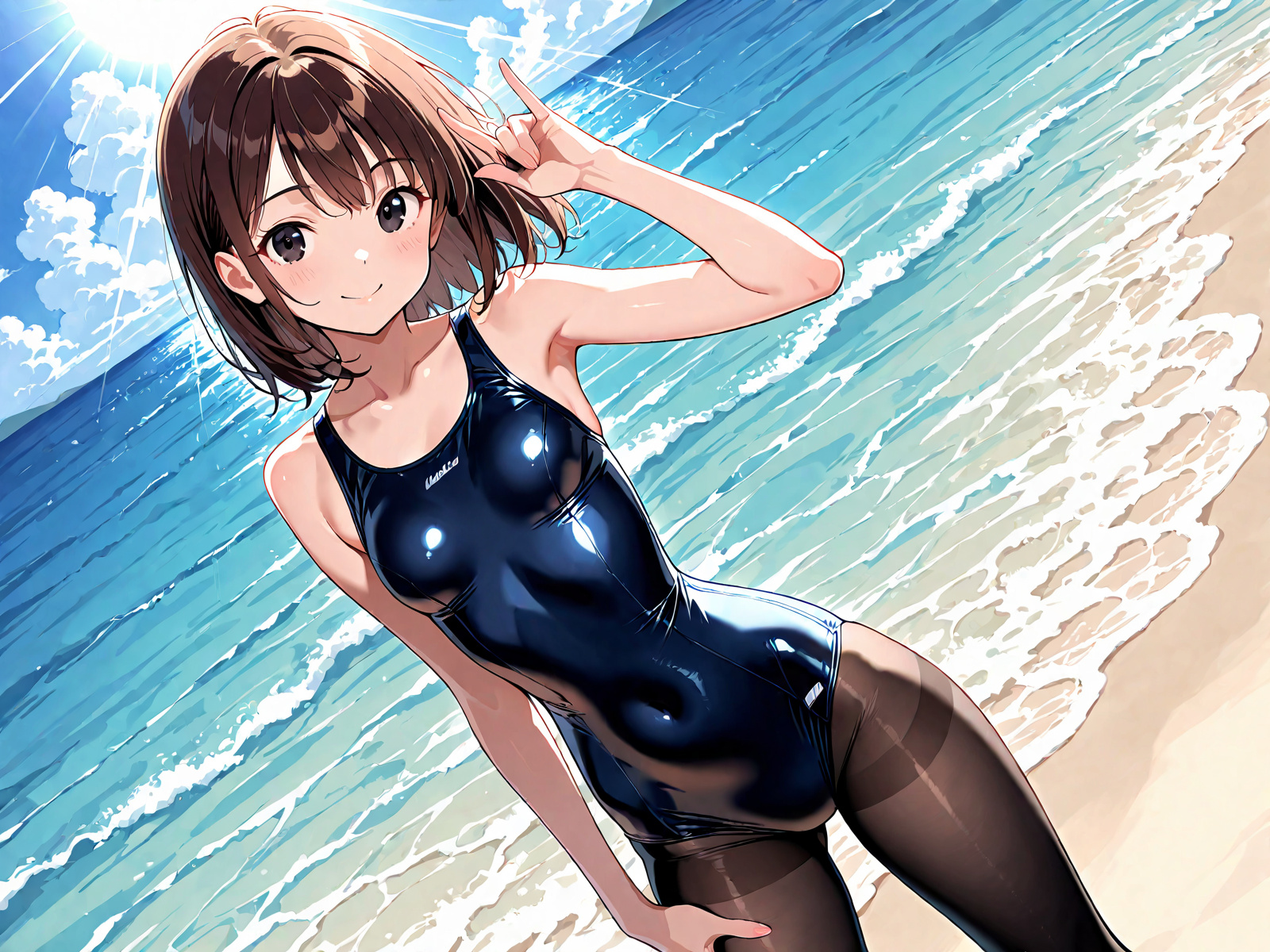 競泳水着を着用した女性のオリジナルイラスト、AI生成画像は、[女性] 二次元 競泳水着画像掲示板へ投稿して下さい。