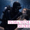 クルーザーの船内で捕らわれていた仲間を見つけレギュレータを口に押し込む女スパイ。